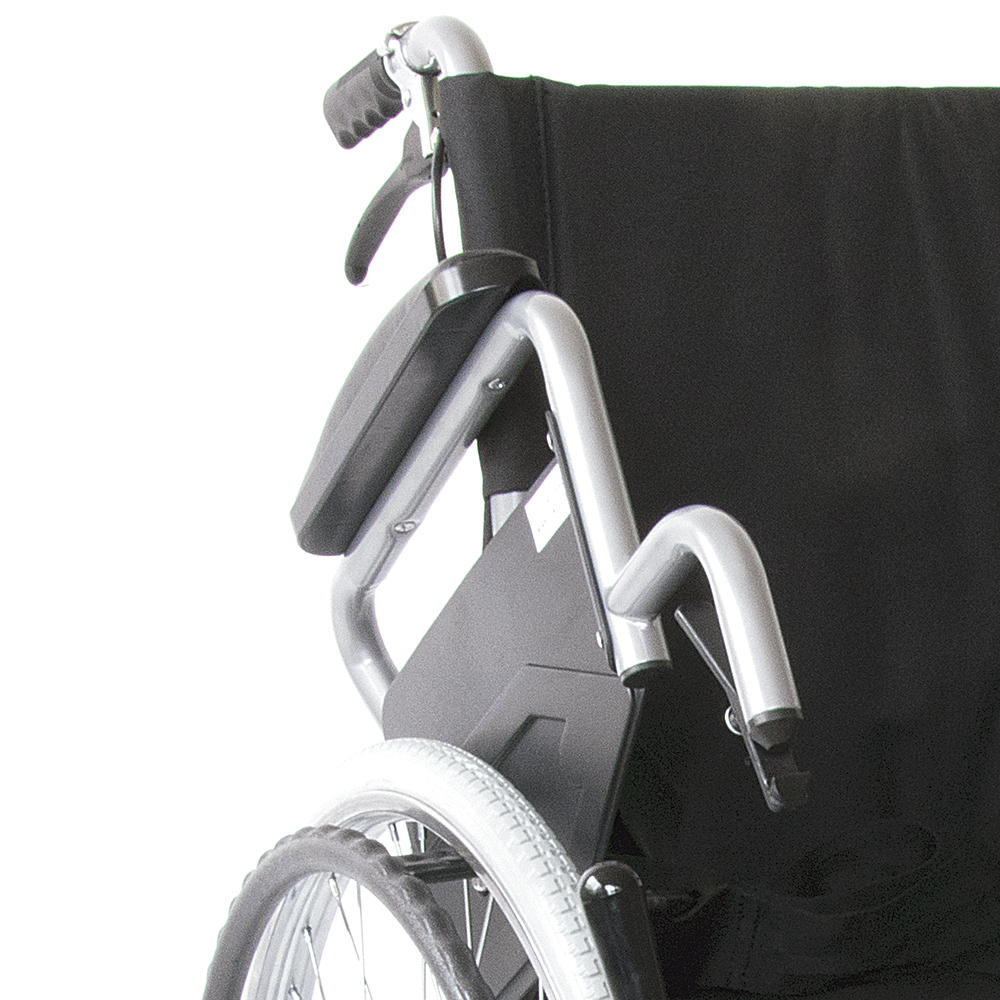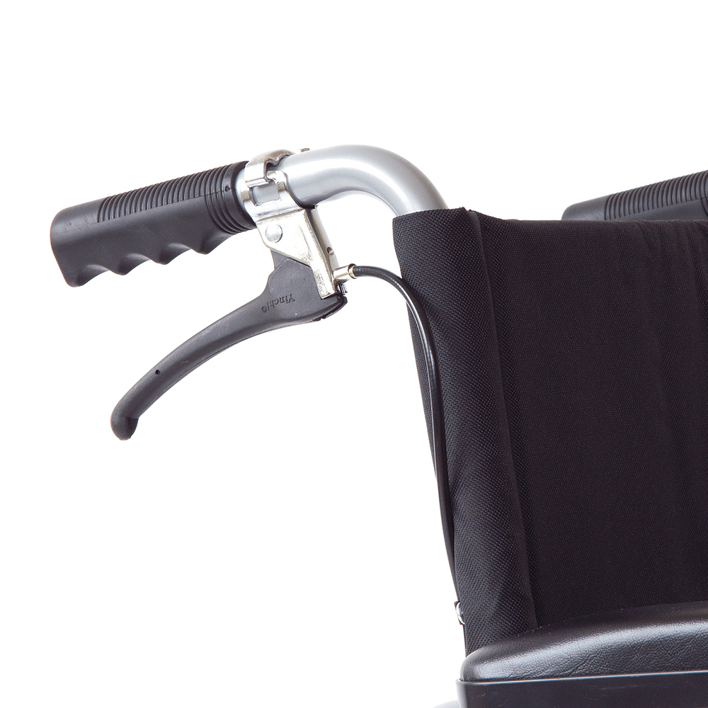Πτυσσόµενο αµαξίδιο µεταφοράς µε µεταλλικό σκελετό ακρυλικής βαφής. Πλαϊνά τύπου “Flip-up”. Υποπόδια αφαιρούµενα και ρυθµιζόµενα. Φέρει φρένα συνοδού και ζώνη ασφαλείας.