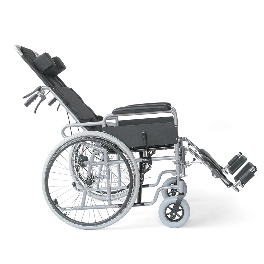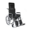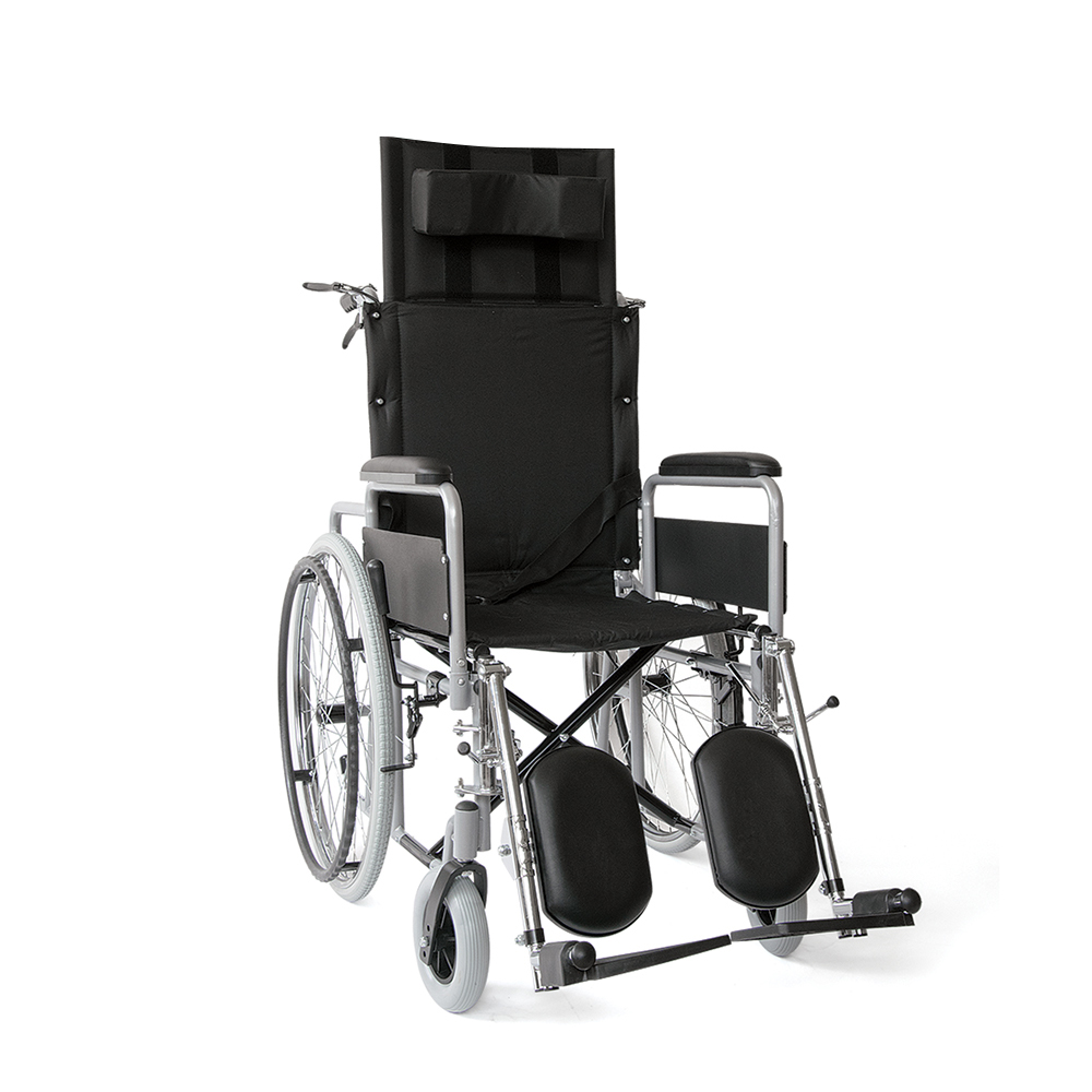 Κατασκευή από µεταλλικό σκελετό ακρυλικής βαφής. Αφαιρούµενα πλαϊνά στήριξης, αφαιρούµενα και ανακλινόµενα υποπόδια µε µαξιλαράκια ανάπαυσης. Υψηλή ανακλινόµενη πλάτη, ρυθµιζόµενη σε θέσεις επιλογής µε προσθαφαιρούµενη προέκταση και αυτοκόλλητο µαξιλάρι. Eπένδυση πλάτης και καθίσµατος από µαλακή ταπετσαρία. Φέρει φρένα συνοδού και ζώνη ασφαλείας.