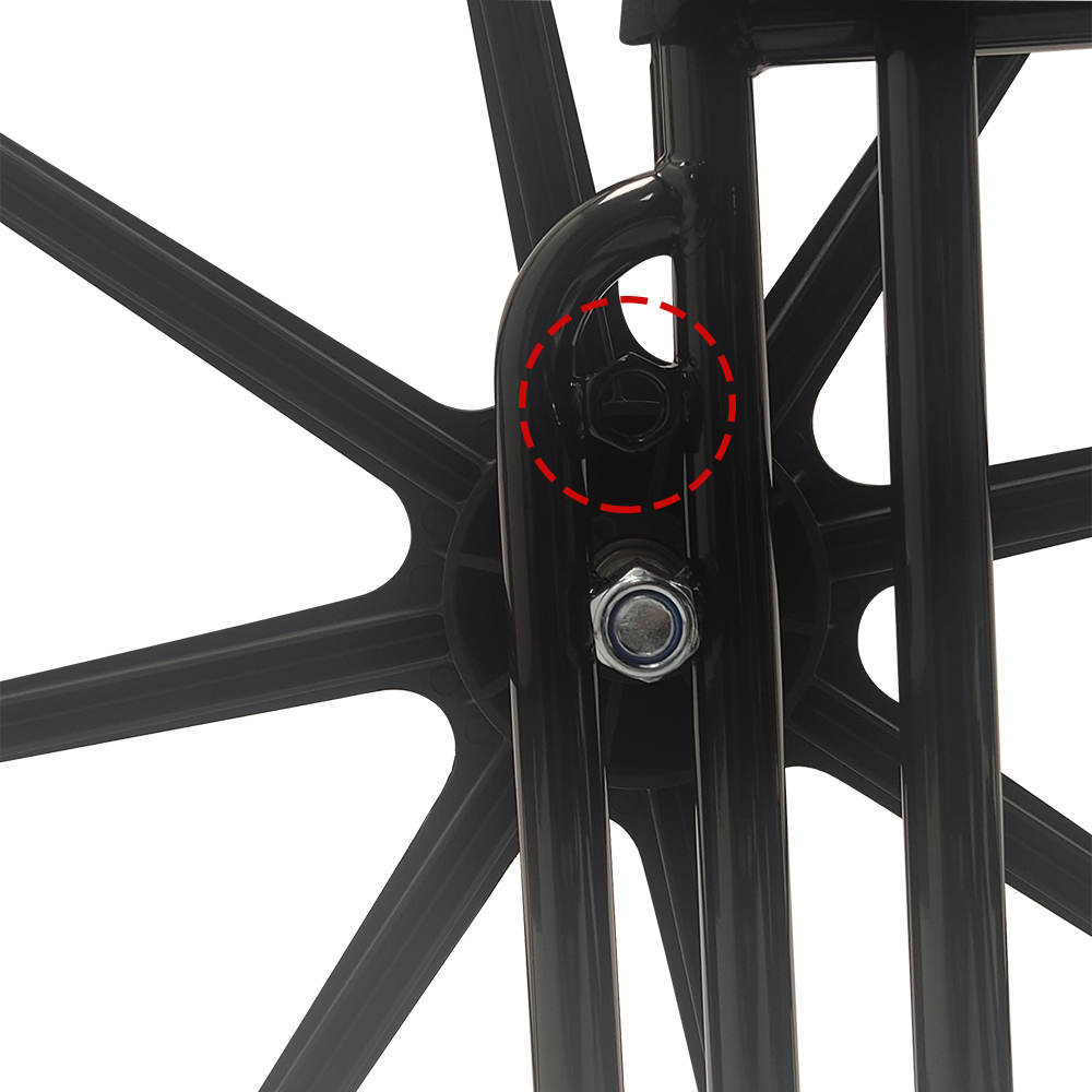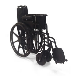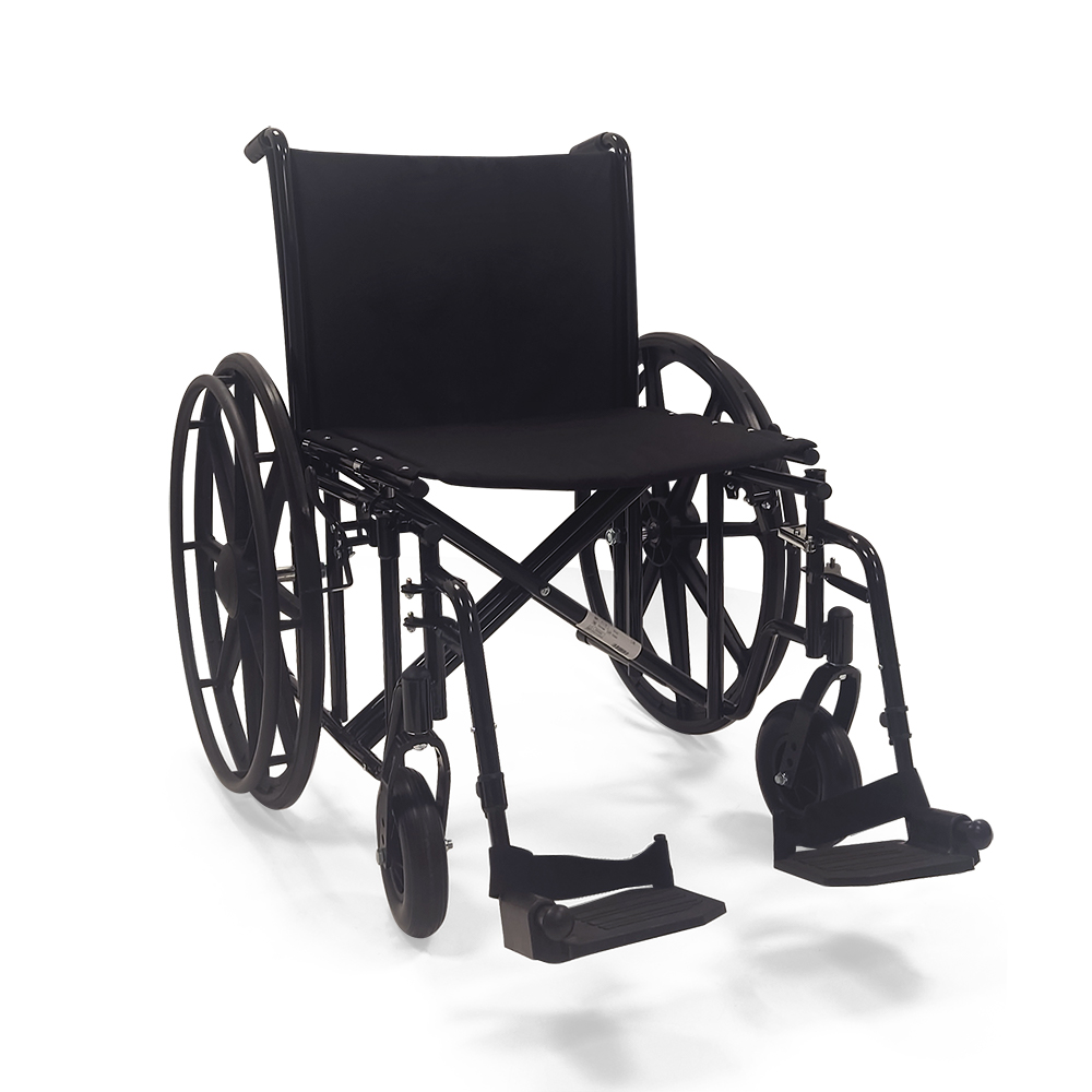 Αµαξίδιο βαριατρικό, πτυσσόµενο, µε µεταλλικό σκελετό ηλεκτροστατικής βαφής (powder coated), dark grey. Ενισχυµένο µε διπλά ψαλίδια για µεγαλύτερη αντοχή και σταθερότητα. Αφαιρούµενα πλαϊνά. Πτυσσόµενη µπάρα ώθησης µε µηχανισµό ασφαλείας. Φρένα στους οπίσθιους τροχούς.