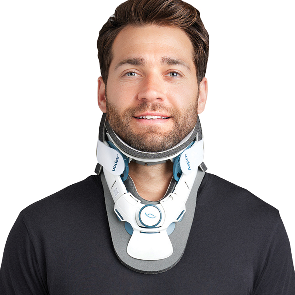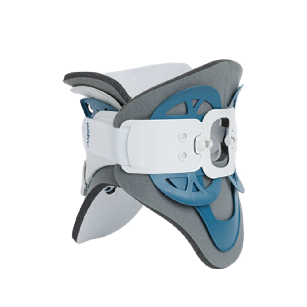 Κατασκευή από foam υλικό υψηλής ποιότητας και αντοχής, με εσωτερική επένδυση βαμβακερή, αντιεφιδρωτική, υποαλλεργική και φιλική στο δέρμα. Αποτελείται από πρόσθιο και οπίσθιο τμήμα. Το πρόσθιο τμήμα διαθέτει ευρεία τραχειακή οπή, καθώς και πρωτοποριακό μηχανισμό αυξομείωσης του ύψους της αυχενικής μοίρας σε επτά θέσεις επιλογής. Ο τρόπος χρήσης του μηχανισμού είναι εύκολος και απλός ( περιστρέψτε το dial δεξιόστροφα ή αριστερόστροφα και επιλέξτε το επιθυμητό ύψος ). H στήριξη του πρόσθιου τμήματος καλύπτει την άνω στερνική περιοχή. Το οπίσθιο τμήμα διαθέτει εργονομικά πλαστικά oval panels ( τρία ) που καλύπτουν την επιφάνεια της ινιακής χώρας προσδίδοντας ικανοποιητική ακινητοποίηση στην περιοχή. Φτάνει έως την ανώτερη περιοχή της θωρακικής μοίρας. Δεν φέρει μεταλλικά μέρη. Τα αφρώδη τμήματα είναι προσθαφαιρούμενα και πλένονται. Ο νάρθηκας είναι σχεδιασμένος ώστε να επιμερίζεται η πίεση που ασκείται σωστά και ομοιόμορφα στην κάτω γνάθο, σε όλη την αυχενική μοίρα έως και την ανώτερη θωρακική. Περιορίζει την κάμψη και έκταση του αυχένα, τις στροφικές και πλάγιες κινήσεις σε πολύ ικανοποιητικό βαθμό. Είναι συμβατός με την Ακτινολογική Εξέταση, την Αξονική και Μαγνητική Τομογραφία.