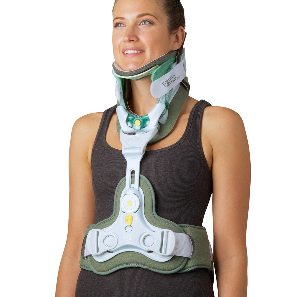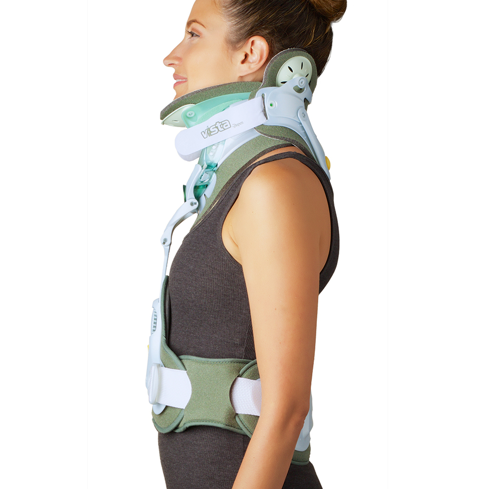 Σύστημα ακινητοποίησης του τμήματος της αυχενικής και της ανώτερης θωρακοαυχενικής μοίρας. Αποτελείται από δύο τμήματα: Το αυχενικό κολάρο “VISTA MULTIPOST” και τον ραχεοστερνικό ακινητοποιητή. Ο ραχεοστερνικός ακινητοποιητής αποτελείται από το πρόσθιο και το οπίσθιο τμήμα τα οποία συνδέονται μεταξύ τους με ρυθμιζόμενες δέστρες και clips εύκολης εφαρμογής. Το πρόσθιο τμήμα του νάρθηκα ρυθμίζεται σε δύο σημεία: Tο πρώτο ρυθμίζει το ύψος στον θώρακα και το δεύτερο τη γωνία ακινητοποίησης της κεφαλής σε σχέση με το στέρνο. Το οπίσθιο τμήμα περιλαμβάνει ρυθμιζόμενη καθ’ ύψος λάμα αλουμινίου η οποία ελέγχει την ακινητοποίηση της αυχενοθωρακικής μοίρας. Το σύστημα CTO4 είναι καινοτόμο και υποστηρίζει τον ασθενή σε όλα τα στάδια της θεραπευτικής του αποκατάστασης. Είναι συμβατός με την Ακτινολογική Εξέταση, την Αξονική και Μαγνητική Τομογραφία.