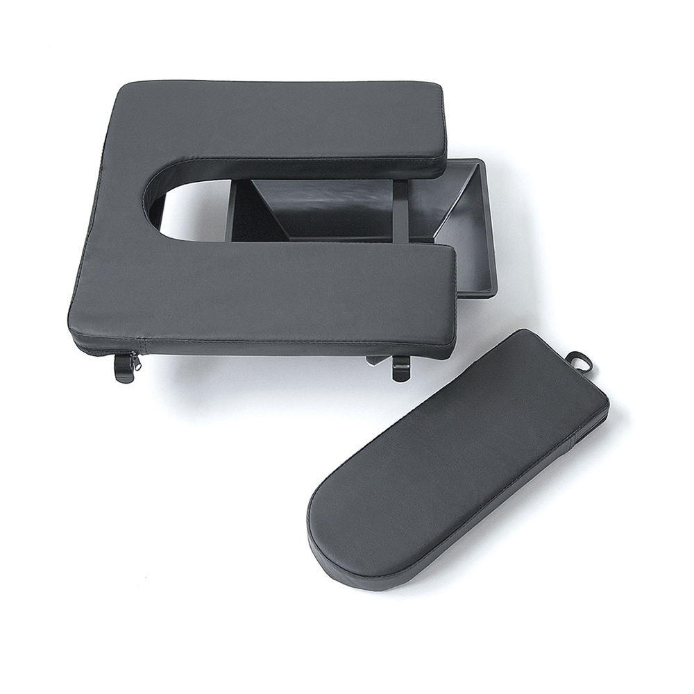 Προσθαφαιρούµενο αναπαυτικό κάθισµα µε οπή και υποδοχή για δοχείο “WC”. Επένδυση από µαλακή δερµατίνη. Εφαρµόζει στο σκελετό του αµαξιδίου µε τέσσερεις µεταλλικούς βραχίονες. Πλένεται. Βάρος 4,5 kg