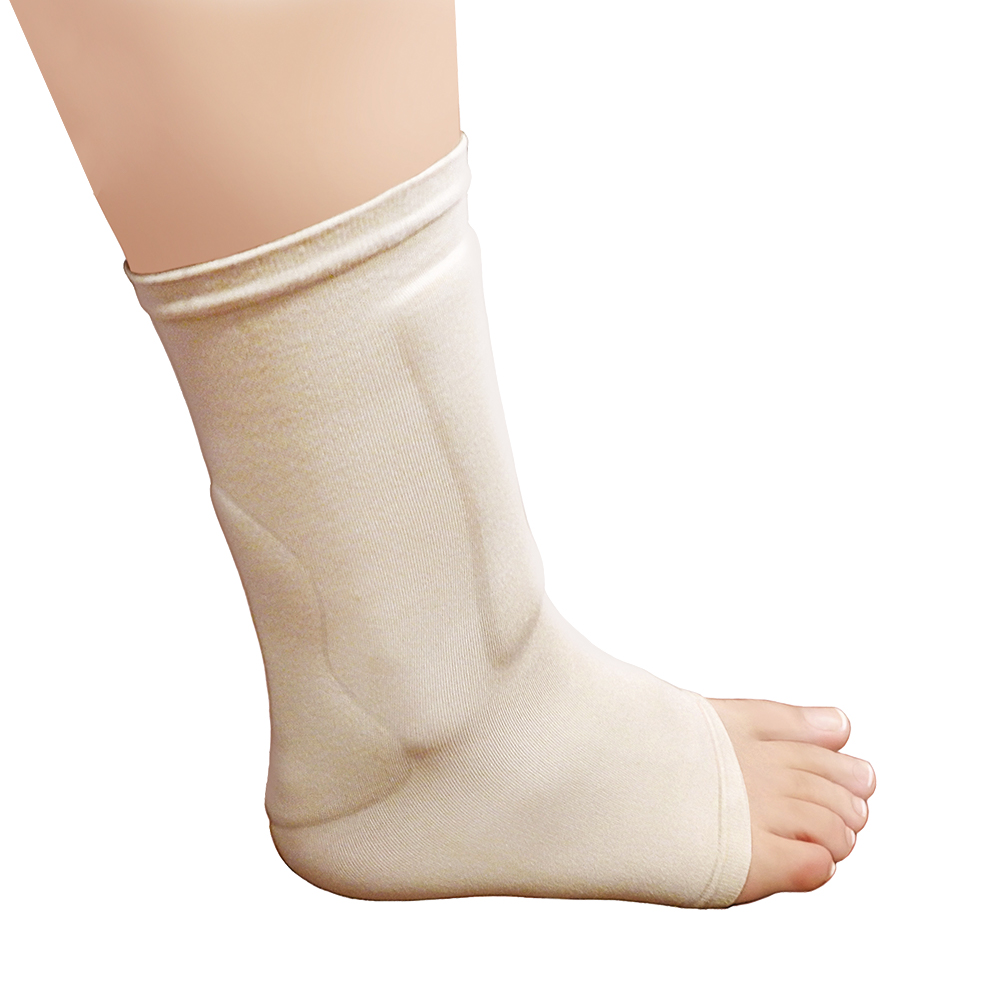 Μαλακή κάλτσα ανοικτών δακτύλων με δύο επιθέματα από πολυμερές μαλακό gel 2 mm (στην κνήμη και τον αχίλλειο τένοντα). Ο ανατομικός σχεδιασμός επιτρέπει σωστή εφαρμογή. Προστατεύει από ερεθισμούς και ελαφρές κακώσεις, που δημιουργούνται κυρίως κατά την άθληση. Μειώνει την τριβή. Τοποθετείται κάτω από την κοινή κάλτσα. Πλένεται. Χρώμα: Μπεζ. Συσκευασία: Τεμάχιο.