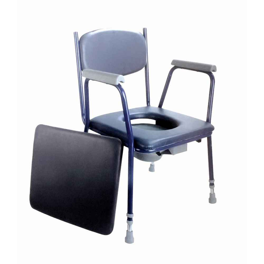 Καρέκλα µπάνιου µε αδιάβροχη επένδυση. Το ύψος είναι ρυθµιζόµενο για εύκολη εφαρµογή πάνω από την λεκάνη της τουαλέτας. Κάθισµα µε οπή και δοχείο WC µε καπάκι. Συνοδεύεται επιπλέον από κάθισµα για περισσότερη άνεση.