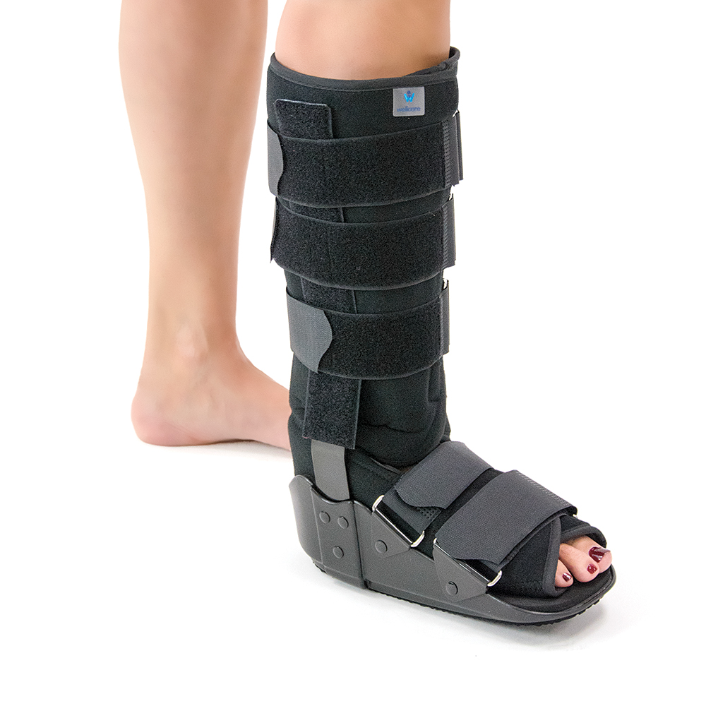 Κατασκευή από σταθερό και άκαμπτο πλαστικό υλικό. Διαθέτει προσθαφαιρούμενη και αυτοκόλλητη αφρώδη επένδυση foam, η οποία καλύπτει εσωτερικά όλη την επιφάνεια της ποδοκνημικής. Είναι υποαλλεργική και αντιεφιδρωτική. Φέρει δύο αμφίπλευρες μπανέλες αλουμινίου, πολύ ισχυρές, σταθεροποίησης του άκρου ποδός. Πέντε αυτοκόλλητοι ιμάντες περίδεσης. Σόλα με ανατομικό σχεδιασμό “ROCKER BOTTOM” για την απορρόφηση των κραδασμών.