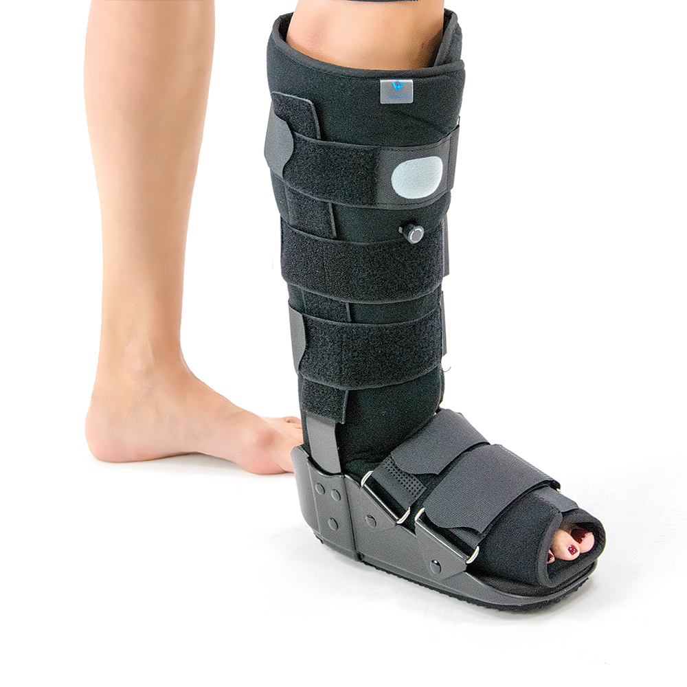 Κατασκευή από σταθερό και άκαμπτο πλαστικό υλικό. Διαθέτει προσθαφαιρούμενη και αυτοκόλλητη αφρώδη επένδυση foam, η οποία καλύπτει εσωτερικά όλη την επιφάνεια της ποδοκνημικής. Είναι υποαλλεργική και αντιεφιδρωτική. Φέρει δύο αμφίπλευρες μπανέλες αλουμινίου, πολύ ισχυρές, σταθεροποίησης του άκρου ποδός. Πέντε αυτοκόλλητοι ιμάντες περίδεσης. Σόλα με ανατομικό σχεδιασμό “ROCKER BOTTOM” για την απορρόφηση των κραδασμών. Επίσης διαθέτει βαλβίδα εισαγωγής-εξαγωγής αέρα (in-out) για μείωση και αποθεραπεία του οιδήματος. Ύψος νάρθηκα 43 cm. Αμφιδέξιος.