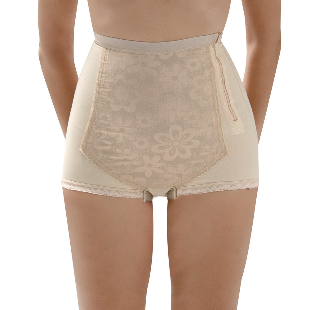 Κορσές από lycra σατινέ, με σταθερή ενίσχυση στην κοιλιακή χώρα. Φερμουάρ στο πλάι για εύκολη εφαρμογή και άνοιγμα στην ήβη με κόπιτσες. Ιδανικός για μετεγχειρητικές καταστάσεις και καισαρικές τομές. Πλένεται. Χρώμα: Μπεζ
