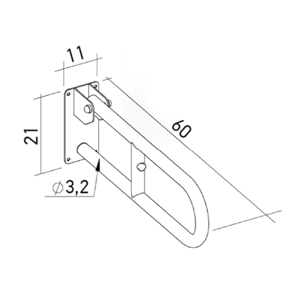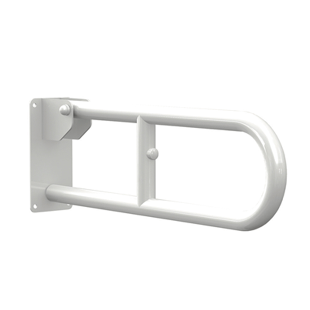 Mεταλλική λαβή τοίχου, ηλεκτροστατικής βαφής. Πτυσσόµενη για οικονοµία χώρου. Επενδεδειµένη µε θερµοπλαστικό µονωτικό και αντιολισθητικό υλικό. Συναστάται να τοποθετείται δίπλα στην λεκάνη της τουαλέτας ή τον νιπτήρα.