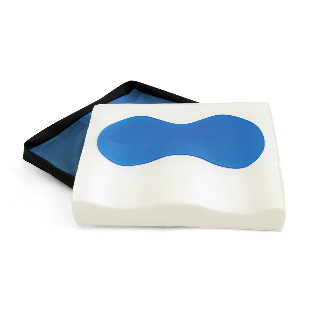 Εξαιρετικό βοήθηµα για το αµαξίδιο και το κάθισµα. Αποτελείται από δύο τµήµατα. Στην άνω επιφάνεια υπάρχει τµήµα Gel το οποίο µειώνει την πίεση που ασκείται στην περιοχή του κόκκυγα και των ισχίων. Το Gel αυτό έχει την ιδιότητα να μειώνει την θερµοκρασία της επιφάνειας κατά 1,5 C, διατηρώντας την δροσερή. Η κάτω επιφάνεια αποτελείται από “Memory Foam” υλικό µε εργονοµικό σχεδιασµό. Απορροφά τους κραδασµούς και διατηρεί το σώµα σε σωστή θέση, συμβάλλοντας στην πρόληψη των δερματικών ελκών και στην ανακούφιση από τον σχετικό πόνο. Μέγιστο βάρος ατόµου 120 kg. Xρώµα: Γκρι, µπλε.