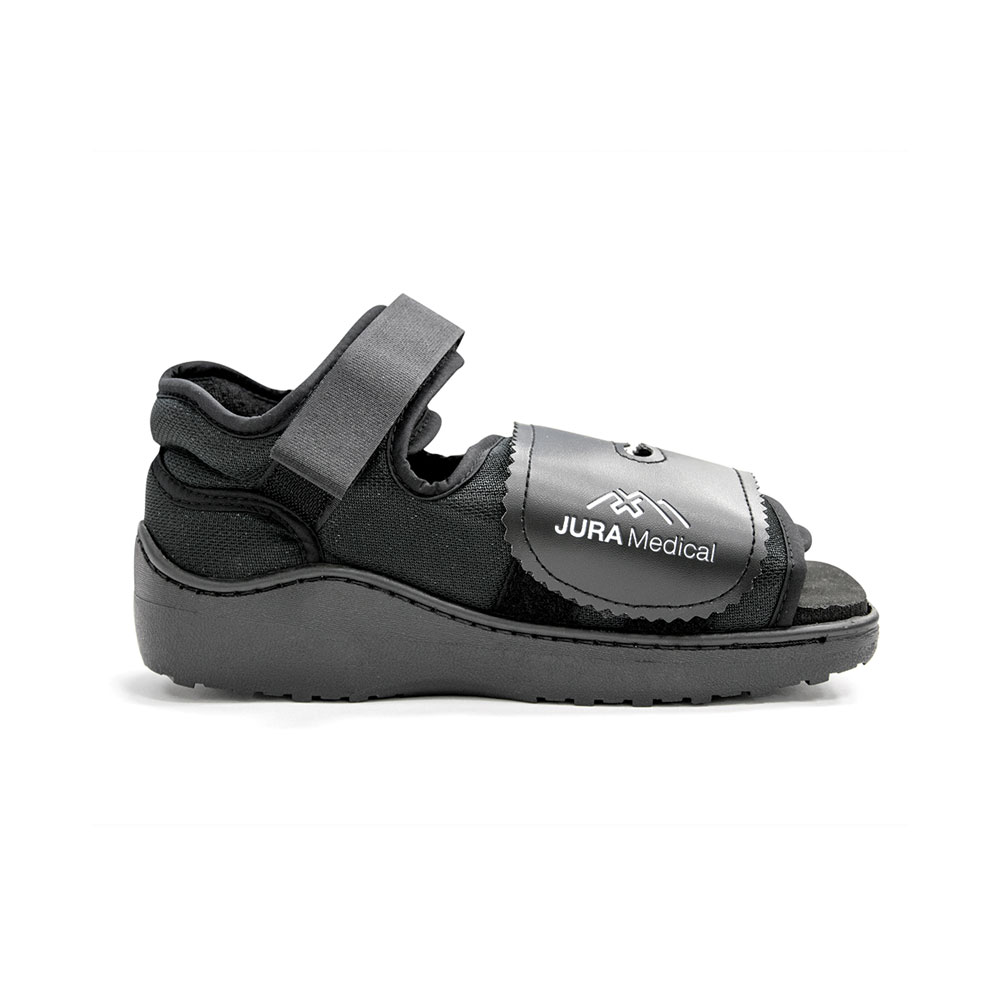 Υπόδημα ελαφρύ. Κατασκευή από αεριζόμενο ύφασμα με εσωτερική υποαλλεργική επένδυση. Άκαμπτη αντιολισθητική και πολυστρωματική σόλα απορρόφησης των κραδασμών. Πελματιαία μαλακή επένδυση, πρόσθιοι ελαστικοί ιμάντες μεγάλου μήκους για ογκώδεις επιδέσεις. Πλένεται. Αμφιδέξιο.