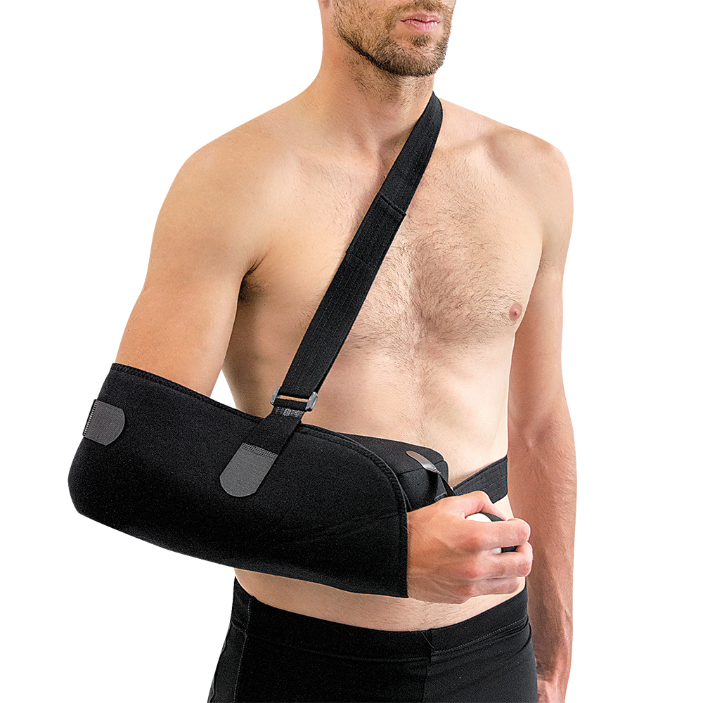 Κατασκευή από υψηλής πυκνότητας αφρώδες υλικό foam. Αυτοκόλλητος φάκελος ακινητοποίησης του αντιβραχίου. Οι δύο επενδεδυμένοι ρυθμιζόμενοι ιμάντες στήριξης προσδίδουν μέγιστη σταθεροποίηση. Ο εργονομικός σχεδιασμός του μαξιλαριού θέτει την άρθρωση του ώμου σε θέση απαγωγής 30°. Αμφιδέξιος. Χρώμα: Mαύρο.