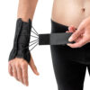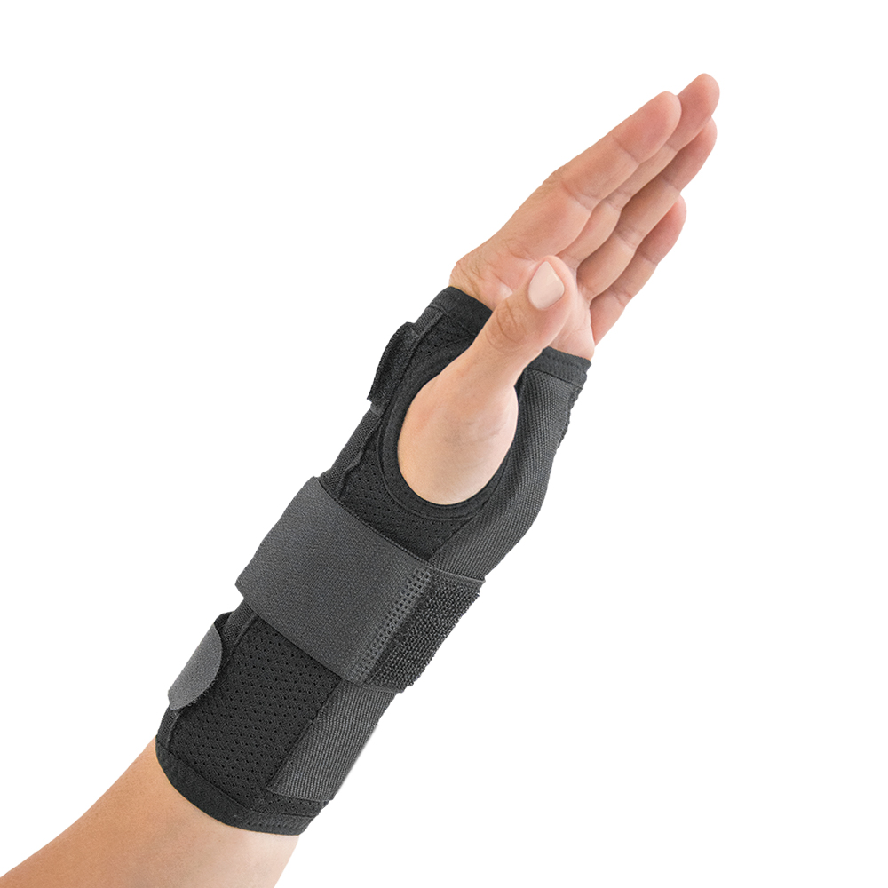 Κατασκευή από αεριζόμενο υλικό ειδικής ύφανσης. Διαθέτει διαμορφώσιμη παλαμιαία λάμα ακινητοποίησης και αποφόρτισης της CMC άρθρωσης. Δύο αυτοκόλλητες δέστρες περίδεσης καθώς και μία επιπλέον ρυθμιζόμενη καρπιαία για την σταθεροποίηση του νάρθηκα. Aμφιδέξιος. Χρώμα: Μαύρο