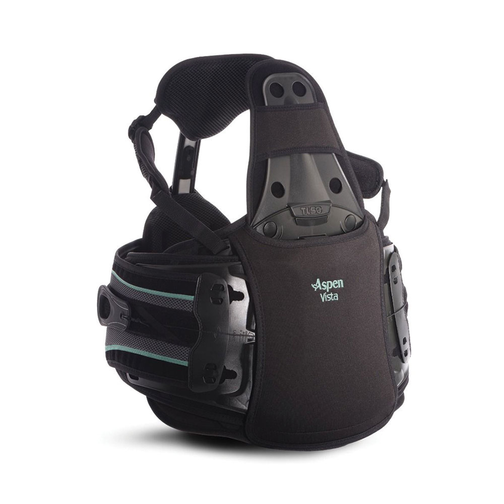 O θωρακοοσφυϊκός νάρθηκας “Vista 464 TLSO” είναι σχεδιασμένος κυρίως για μετεγχειρητική χρήση. Με το πρόσθιο, οπίσθιο και τα δύο μεσοπλεύρια πλαϊνά τμήματα υποστηρίζει άρτια τον κορμό στη ΘΜΣΣ και περιορίζει την κινητικότητά του. Η υποστήριξη αυτή μειώνει στο ελάχιστο την αίσθηση του άλγους. Αποτελείται από τρία τμήματα: Μια ισχυρή οσφυϊκή ζώνη, ένα οπίσθιο θωρακοοσφυϊκό panel και ένα πρόσθιο. Η ζώνη συνδέεται με τα δύο τμήματα αυτοκόλλητα με velcro. Είναι κατασκευασμένη από πλαστικό υλικό υψηλής ποιότητας και αντοχής. Διαθέτει δύο μεσοπλεύρια πλαϊνά τμήματα που τοποθετούνται σε θέσεις επιλογής ( ως προς την περίμετρο της μέσης του ασθενή ). One Size. H ζώνη διαθέτει επίσης καινοτόμο σύστημα αυξομείωσης της συμπίεσης στην ΟΜΣΣ με δύο κορδόνια. Η καινοτομία οφείλεται στο σύστημα συμπίεσης που μπορεί να προσδώσει διαφορετική πίεση στην περιοχή Ο2-Ο3 σε σχέση με την περιοχή Ο4-Ο5 ( ανάλογα με την κρίση του θεράποντα ιατρού ). Το οσφυϊκό και το πρόσθιο στερνοκοιλιακό panel είναι επενδεδυμένα με αφρώδες υποαλλεργικό, αντιβακτηριδιακό και αντιεφιδρωτικό υλικό. Η μπάρα αλουμινίου καταλήγει σε στερνικό πίεστρο ανατομικά σχεδιασμένο και εργονομικά λειτουργικό. Έχει τη δυνατότητα αυξομείωσης του ύψους σε θέσεις επιλογής σε δύο σημεία ( στερνικό και κοιλιακό ). Τα δύο τμήματα συνδέονται με τη ζώνη με velcro. Oι δύο ωμικές ισχυρές ρυθμιζόμενες τιράντες προσαρμόζονται και επιτυγχάνουν τη σωστή ακινητοποίηση του κορμού. Στη συσκευασία υπάρχουν panels για περαιτέρω ενίσχυση στα μεσοπλεύρια τμήματα. Διαθέτει ανταλλακτικά υλικά. Είναι συμβατός με την Αξονική και Μαγνητική Τομογραφία. Χρώμα: Mαύρο