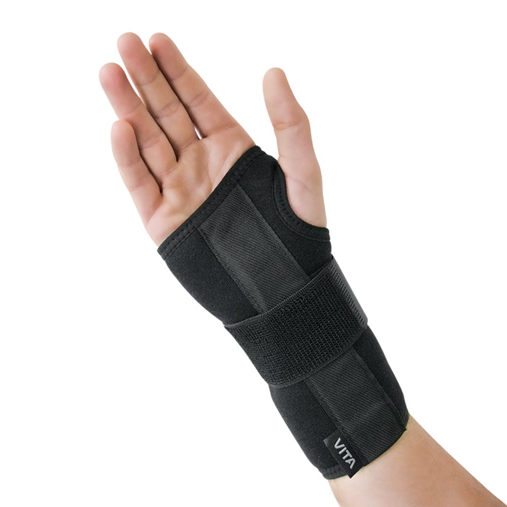 Κατασκευή από υψηλής ποιότητας υποαλλεργικό πολυαμίδιο, φιλικό με το δέρμα. Διαθέτει παλαμιαία διαμορφώσιμη λάμα. Τέσσερις ρυθμιζόμενες αυτοκόλλητες δέστρες σταθεροποίησης. Η ρυθμιζόμενη καρπιαία δέστρα ακινητοποιεί