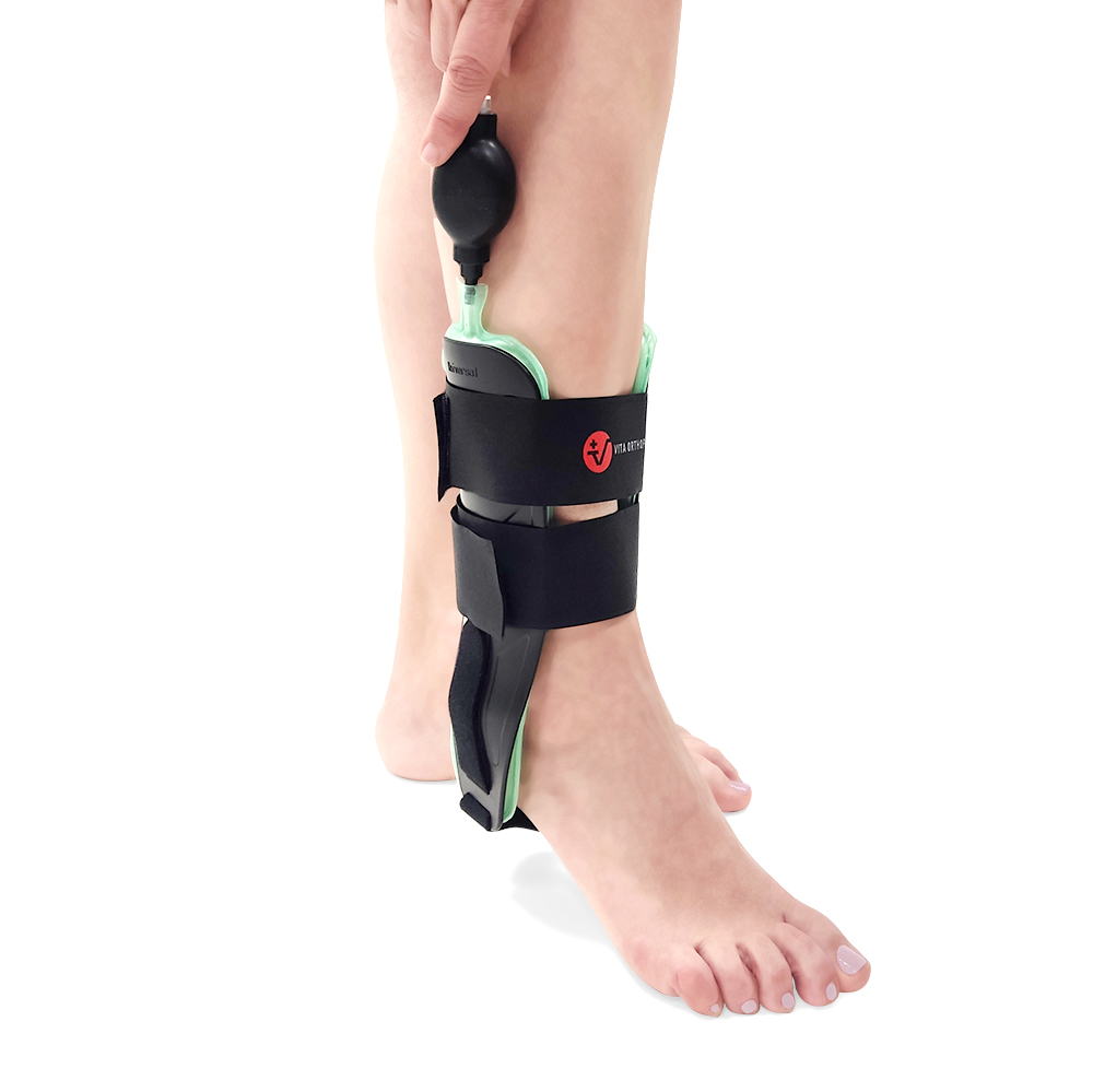 Κατασκευή από ευπροσάρμοστο πλαστικό υλικό. Ρυθμιζόμενοι αυτοκόλλητοι ιμάντες σταθεροποίησης του νάρθηκα. Αυτοκόλλητο ρυθμιζόμενο πελματιαίο πατάκι που καθιστά το βοήθημα κοινού μεγέθους. Δύο πλάγιοι ανατομικοί αεροθάλαμοι εισαγωγής και εξαγωγής του αέρα με σωληνάκια (in-out), ανάλογα με τις ανάγκες του ασθενή. Επιτρέπεται μόνο η κάμψη και έκταση της ποδοκνημικής. Βοηθά στη μείωση του οιδήματος και στην καλή κυκλοφορία του αίματος. Εφαρμόζει μόνο σε αθλητικά υποδήματα. Αμφιδέξιος. Χρώμα: Μαύρο