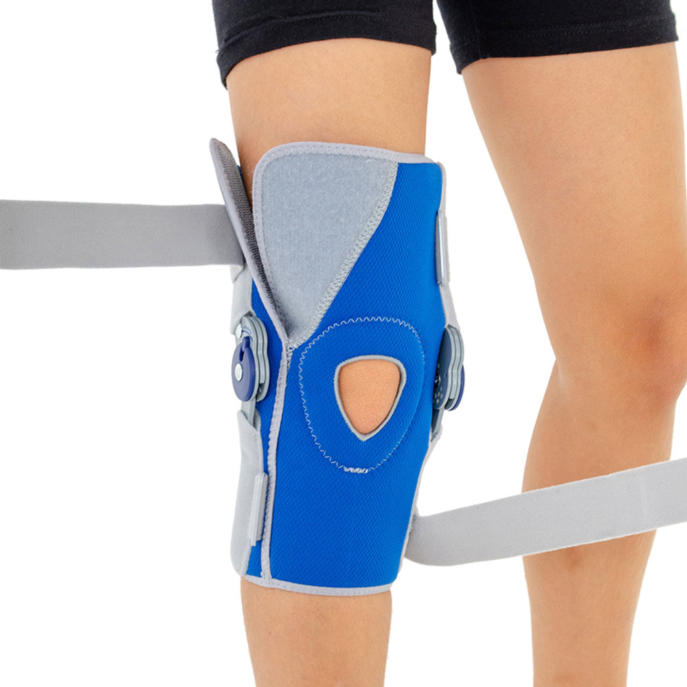 Παιδιατρικός νάρθηκας με οπή και εσωτερικό μαξιλάρι στήριξης και προστασίας της επιγονατίδος. Κατασκευασμένος από ελαφρύ, αεριζόμενο, υψηλής ελαστικότητας, υλικό Ρrosix. Φέρει δύο ρυθμιζόμενες ελαστικές velcro δέστρες για σωστή εφαρμογή και σταθεροποίηση της άρθρωσης του γόνατος. Οι δύο