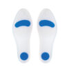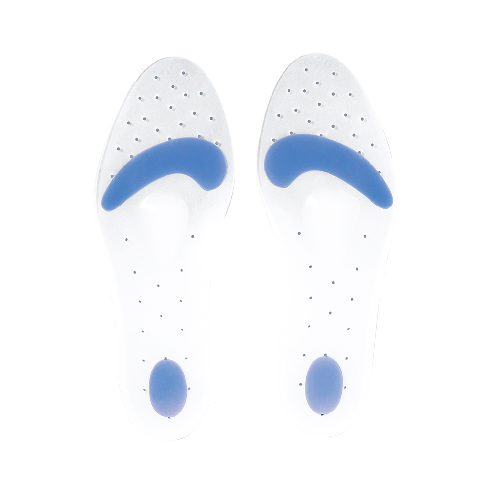 Ανατομικά πέλματα από σιλικόνη υψηλής ποιότητος, με υποαλλεργική και αντιεφιδρωτική δράση. Αεριζόμενα. Φέρουν μαξιλάρι ανύψωσης κεφαλών μεταταρσίου. Ειδικά διαμορφωμένα μπλε τμήματα στα δάκτυλα και την πτέρνα απορρόφησης των κραδασμών. Ανακουφίζουν από το άλγος. Ιδανικά για κουρασμένα πόδια. Συσκευασία: Ζεύγος