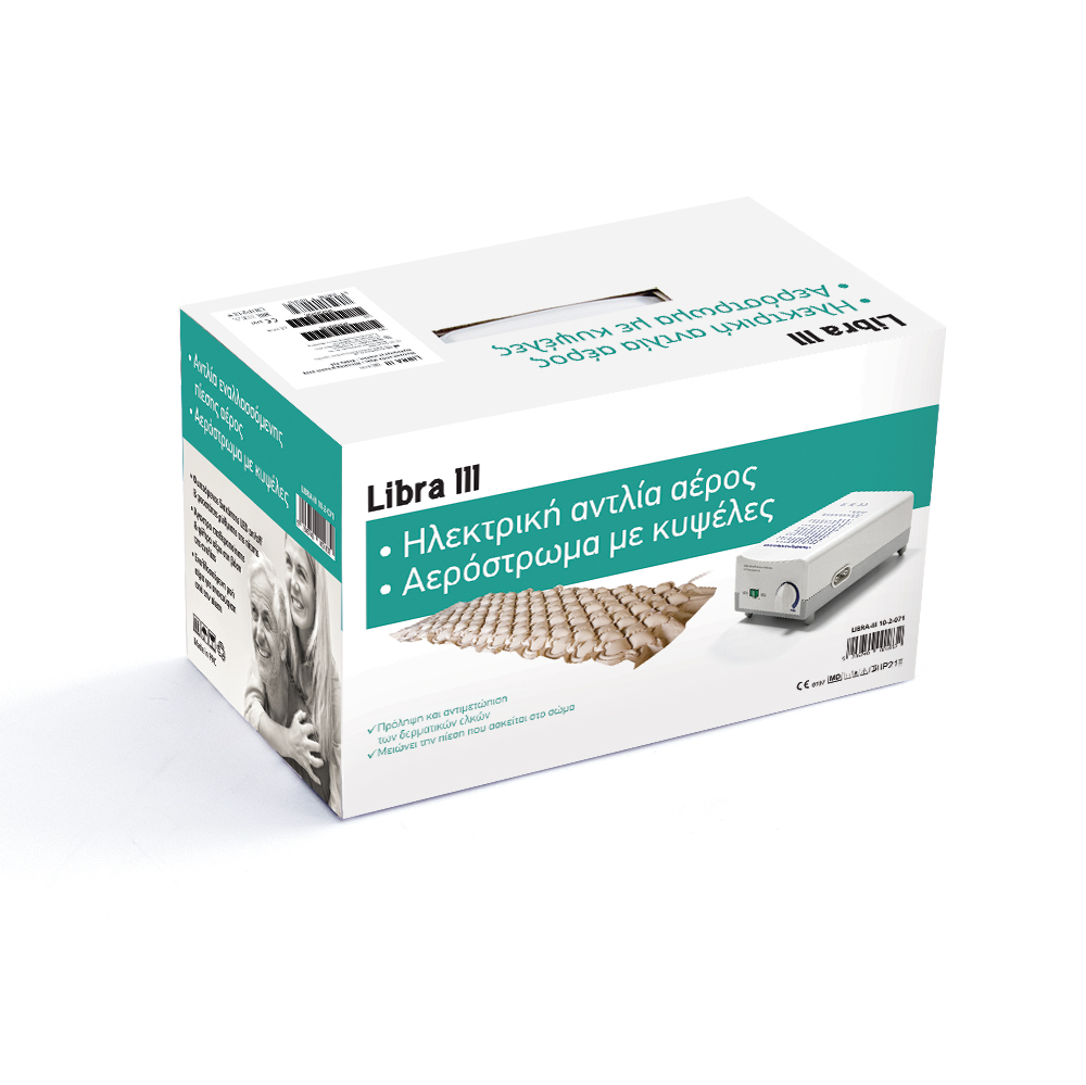 Σύστημα πρόληψης και θεραπείας του δερματικού έλκους λόγω κατάκλισης, με εναλλασσόμενη ροή αέρος. Μικρού μεγέθους αντλία, αθόρυβη. Ο όγκος του παρεχόμενου αέρα ρυθμίζεται με ηλεκτρικό ροοστάτη. Προστατεύεται από τη σκόνη με εσωτερικό φίλτρο αέρα. Η ηλεκτρική ασφάλεια προστατεύει το μοτέρ από την πτώση της τάσης και το βραχυκύκλωμα. Διαθέτει ένδειξη κανονικής ή χαμηλής πίεσης. Φέρει άγκιστρα στήριξης στη μετώπη του κρεβατιού, καθώς και τέσσερεις βάσεις για τοποθέτηση στο δάπεδο.