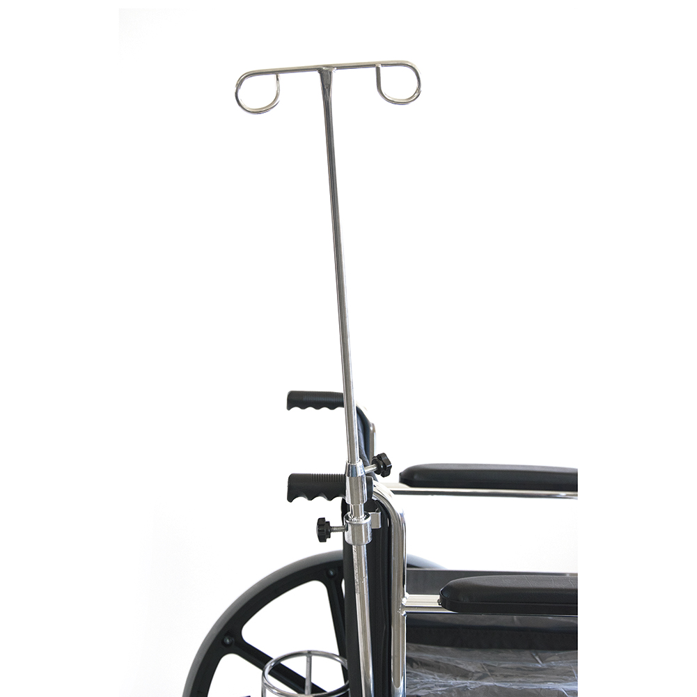 Ανοξείδωτη µεταλλική κατασκευή. Φέρει δύο υποδοχές για φιάλη ορού. Το ύψος του στατό ρυθµίζεται σε θέσεις επιλογής από 75cm έως 135cm. Eφαρµόζει στην οπίσθια µεταλλική βάση του αµαξιδίου.