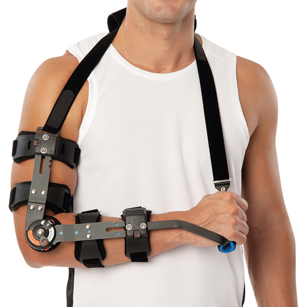 Κατασκευή από ελαφρύ αλουμίνιο υψηλής αντοχής, με εσωτερική αφρώδη επένδυση υποαλλεργική και αντιεφιδρωτική. Αυτοκόλλητοι ιμάντες σταθεροποίησης του νάρθηκα στο βραχίονα και το αντιβράχιο. Πολυκεντρικός μηχανισμός ρύθμισης που επιτρέπει τον έλεγχο της κάμψης και της έκτασης του αγκώνα κατά διαστήματα.