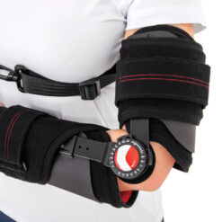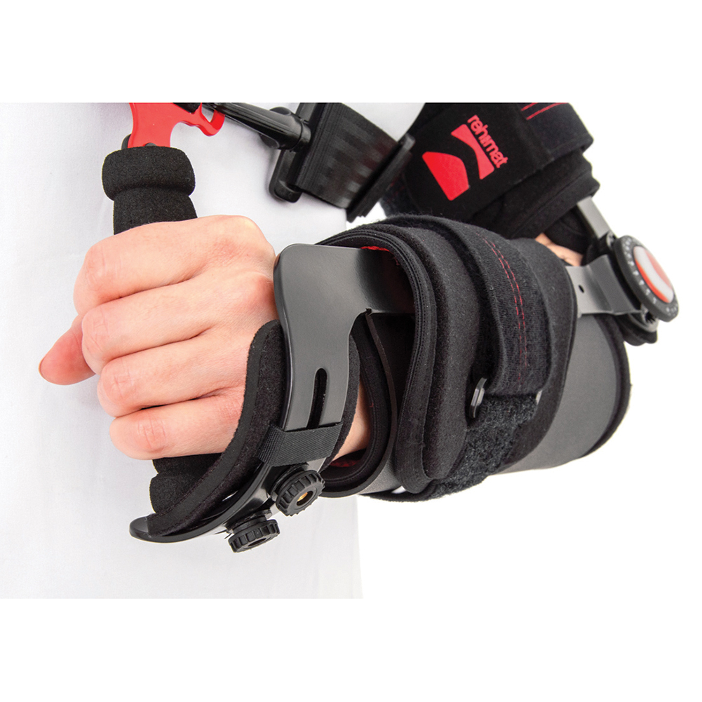 Ο νάρθηκας προσφέρει εργονομικό εύρος κίνησης και εφαρμογής. Αποτελείται από δύο τμήματα (βραχιονίου και αντιβραχίου) με ρυθμιζόμενες δέστρες velcro σταθεροποίησης. Η επιφάνεια των δύο τμημάτων καλύπτεται από πλαστικά μέρη διαμορφωμένα ανάλογα της ανατομίας του βραχίονα και του αντιβραχίου. Το μήκος του νάρθηκα ρυθμίζεται τηλεσκοπικά με μηχανισμό “Press slide”. O νάρθηκας διαθέτει πολυκεντρικό μηχανισμό “1R” για τη ρύθμιση του εύρους κίνησης της κάμψης και της έκτασης του αγκώνα.