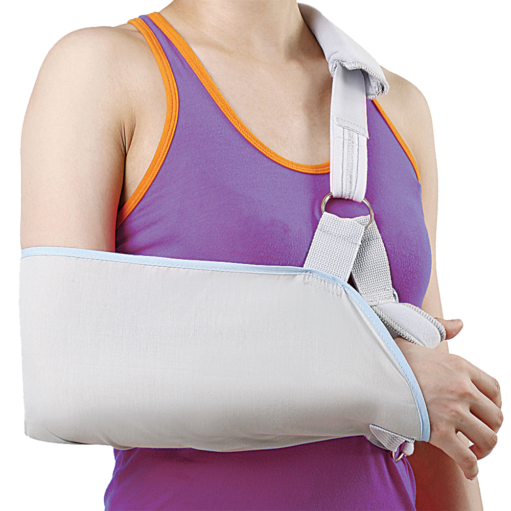 Κατασκευή από μαλακό, ανθεκτικό και αεριζόμενο ύφασμα. Φέρει επενδεδυμένο ιμάντα ακινητοποίησης και υποδοχή για τον αντίχειρα. Αυτοκόλλητη, ρυθμιζόμενη τιράντα ανάρτησης και μαξιλαράκι αποφόρτισης του ώμου