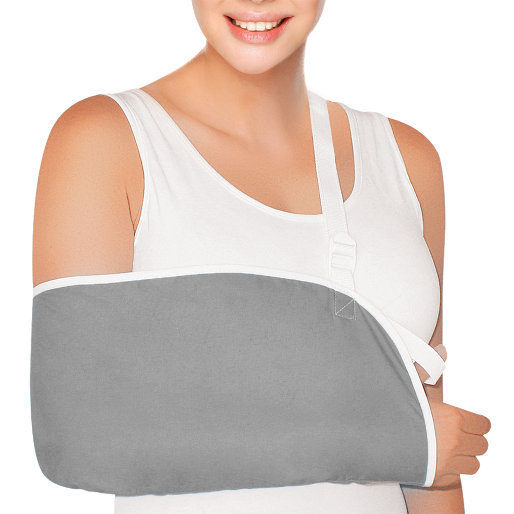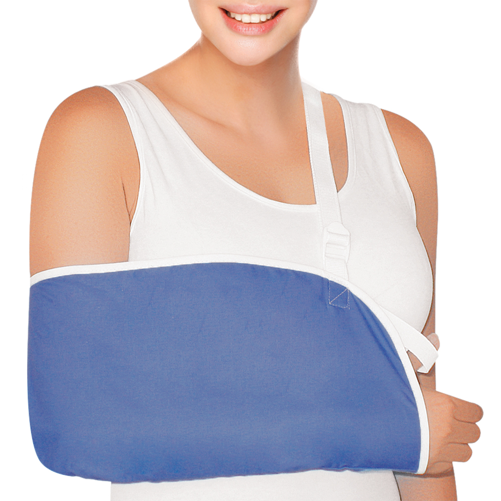 Από βαμβακερό ύφασμα με ρυθμιζόμενη τιράντα ανάρτησης και προστατευτικό αφρώδες μαξιλάρι ώμου. Ανακουφίζει και κρατά τον αγκώνα σε γωνία 90°.