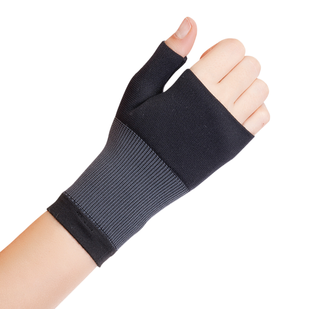 Κατασκευή από ελαστικό υποαλλεργικό ύφασμα διπλής περιέλιξης με μικροΐνες και Aloe Vera. Άνετη εφαρμογή και ομοιόμορφη συμπίεση στον καρπό και τον αντίχειρα. Συνολικό μήκος 17 cm. Αμφιδέξιο. Χρώμα: Mαύρο/γκρι